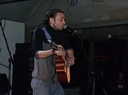 Róbert Bérczesi (born in 1976) is a Hungarian musician, best known as the lead singer and songwriter of the Hungarian cult band hiperkarma.[1][2] Before hiperkarma, he won a Hungarian talent spotter (the Pepsi Generation Next at 1997) with his band called BlaBla, then as the winner of the talent spotter they could make their own studio album Kétségbeejtően átlagos with the Sony Music Entertainment label.[3] With hiperkarma, they only made two albums, hiperkarma (2000) and amondo (2003). After hiperkarma he had two notable projects, Biorobot[4] with the Hungarian songwriter András Nemes, and his solo project, Én meg az ének.[5]