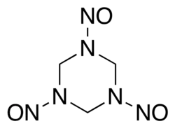 R-salt (TNX, systematic name hexahydro-1,3,5-trinitroso-1,3,5-triazine) is an explosive organic compound that has been used in terrorist attacks.[1][2] It is a high explosive that is less sensitive than other compounds of similar availability.[2] It has a similar structure to RDX but with nitrosamine groups replacing the nitroamine groups of RDX. It is also found as a decomposition product of RDX in the environment, such as after RDX detonation.[3] This may be a potential environmental issue as a study concluded that TNX is toxic to earthworm Eisenia fetida.[4] R-salt is synthesized by nitrosation of hexamine.[2]