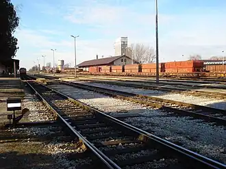 The Zaprešić–Čakovec railway, officially designated as the R201 railway, is a 100.6-kilometre (62.5 mi) partially electrified single-tracked railway line in northwest Croatia that connects the towns of Zaprešić and Čakovec, opened in 1886[1] in former Kingdom of Croatia-Slavonia.[2][maps 1][3] The section between Zaprešić and Zabok is also a branch part of Pan-European Corridor X. Most of the corridor passes through Hrvatsko Zagorje region, connecting the largest part of Međimurje and Hrvatsko Zagorje with Zagreb, spanning through four counties. The line separates at the Zaprešić station from the M101 railway. It is used for passenger (regional) and freight traffic.