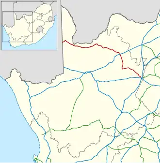 The R31 is a provincial route in the Northern Cape of South Africa that connects Kimberley with the Namibian border at Rietfontein via Kuruman and Hotazel. It is co-signed with the R360 between Askham and Andriesvale.[1]