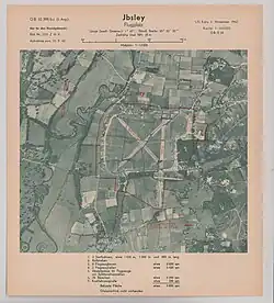 ![]() Aerial Photo of Ibsley Airfield, January 1944. Note the runway extension to the 01 runway at the south side of the airfield, with the perimeter track extension. | |||||||||||
