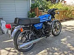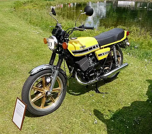 The RD400 is a 399 cc (24.3 cu in) two-stroke air cooled six-speed motorcycle produced by Yamaha from 1976 until 1979. It evolved directly from the Yamaha RD350. The 350 evolved into the RD400C in 1976, the "D", "E" in '77, '78 respectively and the final model, the white 1979 RD400F. (The model year for the first RD400 which was sold in the U.S. was 1976.) Models for the USA had a smaller tank with slightly different shape and only had points ignition until the introduction of the RD400 Daytona (designated "F" in the USA - no relation to the RD400F that every other territory got in 1979).