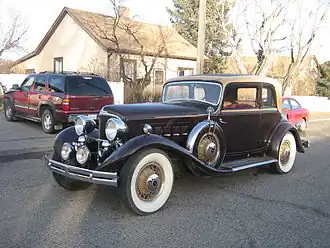 The 1931 Reo Royale was a trendsetting design, introducing design elements that were a precedent for true automotive streamlining in the American market. The 8-cylinder model was sold through 1933 with minor updates. The name was used on a lower-priced 6-cylinder model through 1935. Beverly Rae Kimes, editor of the Standard Catalog of American Cars, terms the Royale "the most fabulous Reo of all". In addition to its coachwork by Murray designed by their Amos Northup, the Royale also provided buyers with a 125 hp (93 kW) straight-eight with a nine-bearing crankshaft, one-shot lubrication, and thermostatically-controlled radiator shutters. The Royale rode upon factory wheelbases of 131 inches (3,300 mm) (Model 8-31) and 135 inches (3,400 mm) (Model 8-35); a 1932 custom version rode upon a 152-inch (3,900 mm) wheelbase (Model 8-52). As many as 3 Dietrich coachbuilt bodies were built on 148-inch (3,800 mm) wheelbases in 1931. Beginning in 1933, the Royale also featured as an option REO's semi-automatic transmission, the Self-Shifter. This unit was unreliable, and Consumers Union Reports advised readers to avoid it.[12] The Model 8-31 was priced at $2,145. The model 8-35 was priced from $2,745 for the sedan to $3,000 for the convertible coupe. The coachbuilt cars were priced close to $6,000. A convertible Victoria was listed at $3,195 but only one is known to have been built. The 8-35 & 8-52 are considered full CCCA classics.[3]