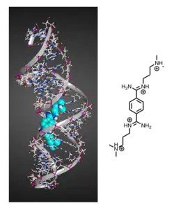 - ^ Wong, Chun-Ho; Nguyen, Lien; Peh, Jessie; Luu, Long M; Sanchez, Jeannette S; Richardson, Stacie L; Tuccinardi, Tiziano; Tsoi, Ho; Chan, Wood Yee; Chan, H. Y. Edwin; Baranger, Anne M; Hergenrother, Paul J; Zimmerman, Steven C (2014). "Targeting Toxic RNAs that Cause Myotonic Dystrophy Type 1 (DM1) with a Bisamidinium Inhibitor". Journal of the American Chemical Society. 136 (17): 6355–61. Bibcode:2014JAChS.136.6355W. doi:10.1021/ja5012146. PMC 4015652. PMID 24702247.