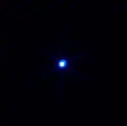 However, later refined analysis[6][7] of improved Chandra and Hubble observations revealed that the surface temperature of the star is lower, only 434,000 °C, and, respectively, the radius is larger, about 14 km (the observed radius with account of the effects of general relativity appears about 17 km).[6] Thus, RX J1856.5–3754 is now excluded from the list of quark star candidates.[7] A subsequent more accurate parallax estimation has led to the correction of this result to km for the true radius (and about 15 km for the observed radius).[2]