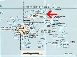 Rabi (pronounced [ˈrambi]) is a volcanic island in northern Fiji. It is an outlier to Taveuni (5 kilometers west), in the Vanua Levu Group. It covers an area of 66.3 square kilometers, reaching a maximum elevation of 463 meters and has a shoreline of 46.2 kilometers. With a population of around 5,000, Rabi is home to the Banabans who are the indigenous landowners of Ocean Island; the indigenous Fijian community that formerly lived on Rabi was moved to Taveuni after the island was purchased by the British government. The original inhabitants still maintain their links to the island, and still use the Rabi name in national competitions.