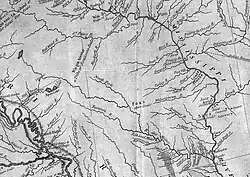 The Racoon River was first documented on the 1814 map by Lewis and Clark, though the USGS references the name to a later map from 1843 named Hydrological Basin of the Upper Mississippi River based on field measurements by Joseph N. Nicollet during his Midwestern expeditions in the 1830s.[5]