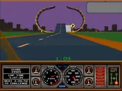 There are three cars with manual transmission (speedster, roadster, and original), one automatic, and three tracks to choose from: the stunt track which is very similar to the one in Hard Drivin', the Autocross track, and the Super Stunt track.