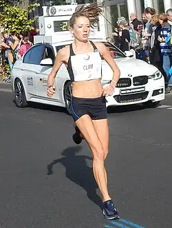 Rachel Cliff (born 1 April 1988) is a Canadian long-distance runner.[1] She competed in the women's 10,000 meters at the 2017 World Championships in Athletics.[2] In 2018, she set the Canadian record with a time of 1:10:08 in The Woodlands Half-Marathon, in March 2018. The same year, Cliff also secured the fastest ever debut-marathon by a Canadian woman when finishing the 2018 Berlin Marathon in 11th place. She won the bronze medal in the 10,000m at the 2018 NACAC Championships and placed 9th at both the 2015 Universiade 5000m[3] in Korea, as well as the 10,000m at the 2018 Commonwealth Games. At the Nagoya Women's 2019 Marathon, she set the Canadian record, running the Japanese marathon as only her second career marathon ever.[4]