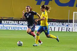 As of January 2015, Corsie has earned over 70 caps for the senior national team and has scored 13 goals playing primarily in the central defender position.[30] She scored three goals during the 2011 FIFA Women's World Cup qualification. In March 2011, Corsie captained the team to a 2–0 win over England at the 2011 Cyprus Cup, a first for Scotland in more than 30 years.[31]