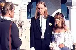 In 1995 a highly topical storyline went underway between the two characters when they married in a ceremony that would benefit them a larger student allowance for tertiary education.[15][63] Not only did the storyline break up the romance storyline between Nick and Rachel's cousin Waverley (Claire Chitham),[63] but it was also a reflection on current events of the time.[64] Producers used the wedding tactically to draw in viewers, releasing much of the storyline to a news outlet prior to the storyline unfolding so that viewers would commit beforehand to watch it.[1] The storyline reportedly struck a chord with students despite the marriage being solely for convenience.[65] As the wedding storyline aired, Bloomfield noted the special bond between the two characters, "With what we're doing now, the two of us are really close. So it just shows that no matter what kind of break there is between seeing each other, Rachel and Nick will always be there for each other".[5] Throughout the mid to late nineties, the characters of Rachel, Nick, Fergus Kearney, and Minnie Crozier often shared scenes together due to their age and installed the soap archetype of "hip, young things".[66] This further developed the relationship between the two characters. In 1998 Bloomfield was shocked to discover an upcoming storyline would see her character fall in love with Nick.[61] She soon learned that it was all part of a comical storyline for the two, "The script said, 'She's so in love with Nick, she wants this...' and I am like, 'No, calm down, it will be a joke.' The next minute Karl walked in the room and every- one just cracked up laughing. I felt so embarrassed. Then I went back and read the scenes before it and saw that Rachel had been struck by lightning."[61] She described the lightning storyline as "something from Days of Our Lives – just without the amnesia!"[15]