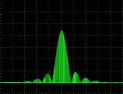 Pure CW radars appear as a single line on a Spectrum analyser display and when modulated with other sinusoidal signals, the spectrum differs little from that obtained with standard analogue modulation schemes used in communications systems, such as Frequency Modulation and consist of the carrier plus a relatively small number of sidebands. When the radar signal is modulated with a pulse train as shown above, the spectrum becomes much more complicated and far more difficult to visualise.