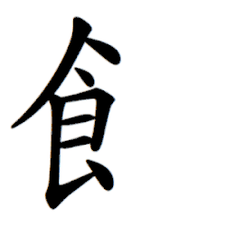 | Japanese Kana: | ショク shoku (on'yomi) く-う ku-u / た-べる ta-beru (kun'yomi) | |