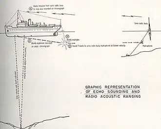 Radio acoustic ranging was an early step along the path to modern electronic navigation systems, oceanographic telemetering systems, and the development of marine seismic surveying. The technique also laid the groundwork for the development of sonars capable of looking ahead of and to the sides of vessels.[11]