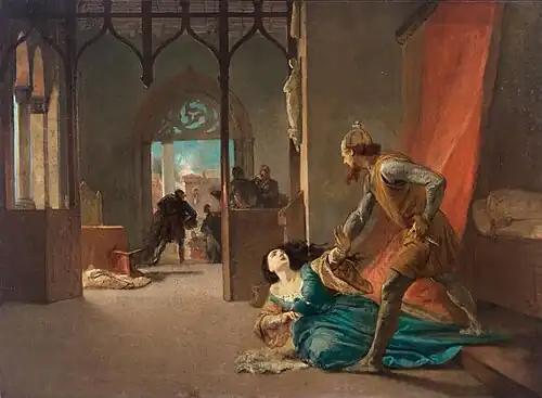 There, he studied drawing with Giuseppe Sogni, and painting with Luigi Sabatelli. As part of his instruction, he helped his teachers create frescoes at churches in Novara and Valmadrera.[1] In 1846, he painted two muses in the foyer of the Teatro di Mortara. He completed his studies in 1850.[2]