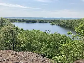 Much of Ragged Mountain has been conserved as nature preserve, rock climbing preserve, and as public watershed lands. Shuttle Meadow and Wassel Reservoirs are managed by the New Britain Water Department; the Metacomet Trail passes along their shores. Hart's Pond is also managed By New Britain Water Dept.and a short walking trail, the Amelia Green Trail, passes along its shore. The Ragged Mountain Foundation,[1] a non-profit rock climbing association, manages fifty-six acres of land on the mountain and has been active in overall conservation efforts and public access efforts. The Berlin Land Trust[2] is also active in the conservation of Ragged Mountain and its viewshed.