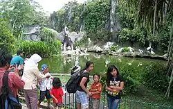 Ragunan Zoological Park (Indonesian: Taman Margasatwa Ragunan), formerly and still commonly known as Ragunan Zoo (Indonesian: Kebun Binatang Ragunan), is a zoo located in the eponymous kelurahan (subdistrict) in Pasar Minggu, South Jakarta, Jakarta, Indonesia. The zoo has an area of 140-hectare (350-acre) and the largest park in Jakarta. The zoo has an aviary and a primate centre, and employs over 450 people.[2] Many of the animals in the zoo are endangered and threatened from all parts of Indonesia and the rest of the world. There are a total of 2,288 animals inside the zoo.[3] Laid out in a lush tropical habitat, rare animals such as crocodile, chimpanzee, gorilla, orangutan, tapir, anoa, sumatran tiger, babirusa, and peacocks are given ample room. The zoo is located in South Jakarta and is easily accessible through the Jakarta Outer Ring Road and TransJakarta Corridor 6 bus (green color).[4]