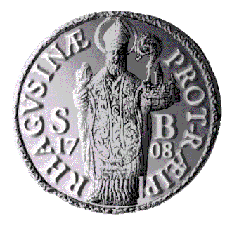 It was minted between 1683 and 1803 and depicted the image of Saint Blaise (Croatian: Sveti Vlaho), the patron of the Republic, on the obverse, carrying a model of the city of Ragusa (modern Dubrovnik) as well as a bishop's crosier in his left hand and giving a blessing with his right one. On both sides of the Saint there were letters (S and B = Sanctus Blasius) and numerical digits that represented year of minting. The obverse carried the edge inscription "PROT(ector)-RÆIP(ublicae)-RHAGVSINÆ". The reverse showed Jesus Christ and inscription "SALVS TVTA".