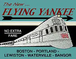 One of the most popular and busiest trains to be operated out of Portland was the Boston-Portland-Bangor Flying Yankee route, which was run jointly by the MEC and Boston & Maine Railroads, making three daily departures (two southbound and one northbound) from Portland Union Station. On April 1, 1935, this service was inaugurated with a then-groundbreaking diesel-powered stainless steel articulated streamline train set. Based at Portland, its three-unit, 142-seat integrated consist was the first such non-steam streamliner to enter service in North America east of the Mississippi, and the third overall in the United States after the Chicago, Burlington and Quincy Railroad's almost identical Pioneer Zephyr (1934–1960) the Union Pacific Railroad's M-10000 (1934–1942).