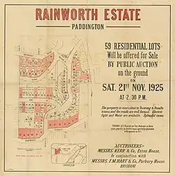 Originally there was a house with large lands on Boundary Street, Rosalie (now Toowong), called "Rainworth" owned by Sir Augustus Charles Gregory, Surveyor-General of Queensland; it was named after the town of Rainworth near his birthplace in Nottinghamshire, England.[4] After his death in 1905, the house and land were sold.