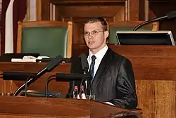 Born in Riga, he was elected to the Saeima at the 2010 parliamentary election. He was the Alliance's candidate for Prime Minister at the 2011 election, at which the party increased its number of seats from 8 to 14.