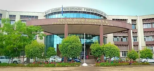 Rajiv Gandhi Proudyogiki Vishwavidyalaya (RGPV), also known as State Technological University of Madhya Pradesh, is a state university[3] situated in Bhopal, Madhya Pradesh, India. It is a multi-campus affiliating, research university offering diploma, undergraduate, postgraduate, integrated, dual and doctoral courses in fields like engineering, technology, pharmacy, management, architecture, design and applied sciences. The university has been accredited with Grade 'A' by NAAC.[4]