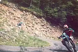 The Rallye des Pyrénées, also known as the Circuit des Pyrénées and formerly as the Pau-San Sebastián Rally,[1] was a two-day international motorcycle competition in late June set in the Pyrenees mountains of France and Spain, consisting of about 400 miles (640 km) of timed trials and hill-climbs.[2] The competition, started in 1951 by the Union Motorcycliste Paloise,[3] attracted a high proportion of competitors from European police and military units.[1] French motorcycle periodical, Moto Revue, stated, "The Circuit des Pyrénées confronts the riders with many hazards and to cross the finish line is itself a fine reward",[4] whilst motorcycle writer Cook Neilson described the competition as "the ultimate remaining Racer Road experience".[3] British magazine, Motor Cycle Sport called the 1978 event, "an anachronism and dangerous" yet "one of those phenomenal events that should not really be allowed but is".[5]