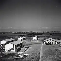 Ef'al was planned as an urban kibbutz, but due to high real-estate prices it was established on 250 dunams of agricultural land purchased by the Jewish National Fund near Kfar Azar. It was the site of one of the first battles of the 1948 Arab-Israeli War. The first residents arrived in May 1947. On 4 December 1947, the kibbutz was attacked by 120 to 150 attackers from the village of Salame.[1] Defenders, including some Palmach members, fought off the attackers. After the 1948 Arab–Israeli War the kibbutz gained another 1,000 dunams.