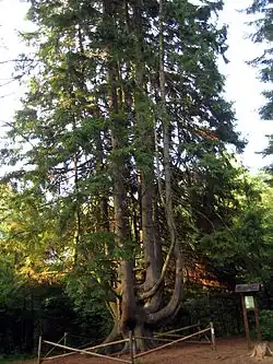 - Natural Monument "Witches Spruce" (Spruce declared a natural monument. Its height of 32 meter, 5 meters in waist and branching to the 18 stems. In 2007 after a major wind storms, one trunk break away, now it has 17 trunks)