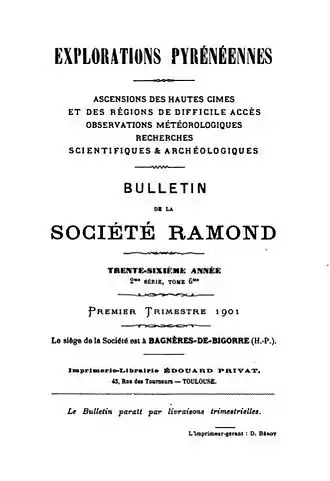 - ^ "Les Bulletins de la Société Ramond" [Bulletin of the Société Ramond]. ramond-societe.com (in French). La Société Ramond. Archived from the original on 18 November 2013.
