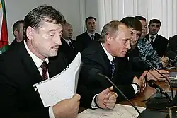 After an attack on the Church of Archangel Michael in Grozny on 19 May 2018, Kadyrov stated that he had personally overseen the operation to eliminate the attackers.[105] On 26 September, he signed an agreement with Yunus-bek Yevkurov, the Head of Ingushetia, resolving the border dispute between the two Russian republics.[106] The agreement seen as grossly unfair to Ingushestia ignited widespread protests eventually leading to resignation of Yevkurov on 24 June 2019.[107][108][109][110]