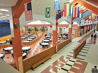 ![]() View of the cafeteria and main hallway from the second floor walkway overlook. | |