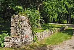 The estate grounds once featured an arboretum, swimming pool, windmill, and flower gardens, all ringed by a lilac hedge.[5] Only traces of the gardens and walls remain.[3]