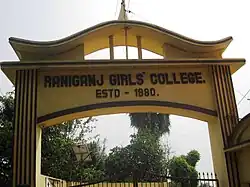 Raniganj Girls' College, established in 1980, is a college for girl students at Raniganj in Asansol, Paschim Bardhaman district. It offers undergraduate courses in arts, commerce and science. It is affiliated to Kazi Nazrul University, Asansol.[1] The college is recognized by the University Grants Commission (UGC) under sections 2F and 12B of the UGC Act 1956.[2]