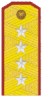 | Vrchní velitel branné moci | Armádní generál | Sborový generál | Divisní generál | Brigádní generál | Plukovník | Podplukovník | Major | Štábní kapitán | Kapitán | Nadporučík | Poručík | Podporučík | |||||||||||||||||||||||