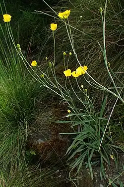 Ranunculus gramineus, called the grass-leaved buttercup, is a species of flowering plant in the genus Ranunculus, native to the western Mediterranean; Morocco, Algeria, Tunisia, Portugal, Spain, France, Italy (including Sardinia), and Switzerland.[2] It has gained the Royal Horticultural Society's Award of Garden Merit.[3]