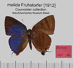 - ^ Fruhstorfer, 1912 Uebersicht der Lycaeniden des Indo-Australischen Gebiets. Begründet auf die Ausbeute und die Sammlung des Autors Berl. ent. Zs. 56 (3/4) : 197-272, f. 1-4