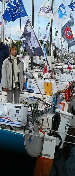 ![]() Rafaëla le Gouvello in Douarnenez, a few days before the start of her first transoceanic boat race, the 2013 Transat 6.50. | |