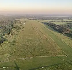 The airfield has two 60 m (200 ft) wide parallel grass-covered runways: 15L/33R 1,100 m (3,600 ft) and 15R/33L 1,600 m (5,200 ft).[2]