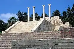 Measuring 5 by 7.5 meters, the Ras el Soda temple contains a podium that is 1.4 meters high with a staircase in front.[6] The small temple, which is built of limestone, has ionic marble columns,[8] and also contains a cella (or inner chamber),[9] with a doorway in the eastern side of the temple.[10]