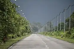 The Rasau Bridge, which spans the Belait River, provides a direct route from Brunei to the Sungai Tujoh Immigration Checkpoint, eliminating the need for the often frustrating ferry service. Travellers using the bridge were required to pay a toll.[13] However, on 15 December 2022, the Public Works Department (JKR) announced the demolition of the Rasau Bridge Toll building. Traffic was diverted around the demolition site, with work lasting for six weeks.[14]