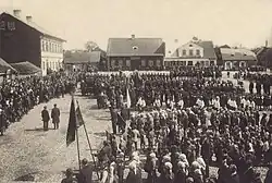 During most of the World War I, the town was occupied by the German army. In the spring of 1915, the Germans concentrated Army Group Lauenstein in the area of Tilsit, with three infantry and three cavalry divisions opposing one infantry division and units of border police and Russian volunteers. The Bavarian cavalry division swept through Raseiniai on April 14 en route to Šiauliai. Refugees from Raseiniai appeared in Šiauliai on the morning of April 15 warning of the German advance.