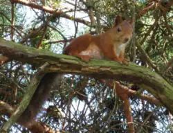 According to Rudolf Simek, "the squirrel probably only represents an embellishing detail to the mythological picture of the world-ash in Grímnismál".[9] Hilda Ellis Davidson, describing the world tree, states the squirrel is said to gnaw at it—furthering a continual destruction and re-growth cycle, and posits the tree symbolizes ever-changing existence.[10] John Lindow points out that Yggdrasil is described as rotting on one side and as being chewed on by four harts and Níðhöggr, and that, according to the account in Gylfaginning, it also bears verbal hostility in the fauna it supports. Lindow adds that "in the sagas, a person who helps stir up or keep feuds alive by ferrying words of malice between the participants is seldom one of high status, which may explain the assignment of this role in the mythology to a relatively insignificant animal".[2]