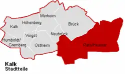 Rath/Heumar is a quarter of Cologne, Germany. It is located in the eastern part of the city, in the borough (Stadtbezirk) of Kalk.