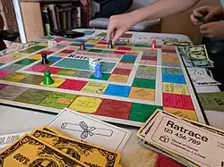 Ratrace is a family economic board game designed by Alfons Rubbens and published by Waddingtons in 1967. Described as "the madcap game of social climbing," players attempt to acquire status and cash in order to make their way from Working Class to High Society and become the wealthiest player by the end of the game.[1]