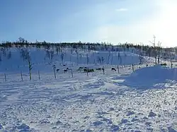 The lake Raudvatnet is located in Sami territory, where the traditional speakers of the Ume Sami language once flourished. Breeding reindeer is an essential part of the economy of the Samis around the lake. During wintertime the reindeer are corralled east of the lake Raudvatnet and south of the mountain Raudfjellet. In the summertime, they graze on grass in the areas east of Raudvatnet and south of Tverrvatnet.