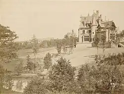 In c. 1873, after 500-years of ownership by the Rau von Holzhausen family, the industrialist and diplomat Ferdinand Eduard Stumm (1843–1925), later ennobled as Baron von Stumm, bought the property which included 1,900 fields of meadows and forest areas.[1] The last Lord Rau von Holzhausen as an officer in the Hessian Army and when Hesse-Kassel became part of Prussia during German unification, he refused to join the Prussian Army and sold all his property to Stumm, the ambassador's delegate, and moved out of Germany shortly thereafter.[2][3]