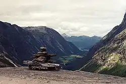 European Route E136, Norwegian County Road 63, and Norwegian County Road 64 all pass through the municipality. The Trollstigen road is part of County Road 63 in Rauma, and it is a famous tourist attraction due to the many hairpin turns on the steep road.