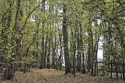 Trees in this wood include oak, ash and field maple, together with some elms, although many were killed by Dutch elm disease. Invertebrates include the rare white-spotted pinion moth, which depends on elms for food for its larvae, and white-letter hairstreak butterflies. The dead elms provide a habitat for a wide variety of fungi.[1]