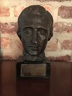 In 1933, the society started its Raven Award program to recognize outstanding contributions of students and faculty.[11][15] The original award was in the form of a bust of Edgar Allan Poe, based on a larger bronze sculpture commissioned with artist Harold Cash and first shown at commencement in April 1933.[16][11] John Lloyd Newcomb, president University of Virginia, was the first recipient of the Raven Award.[17] Other notable recipients include Edward L. Ayers, Colgate Darden, Nicole Hurd, and John Strangfeld.[18]
